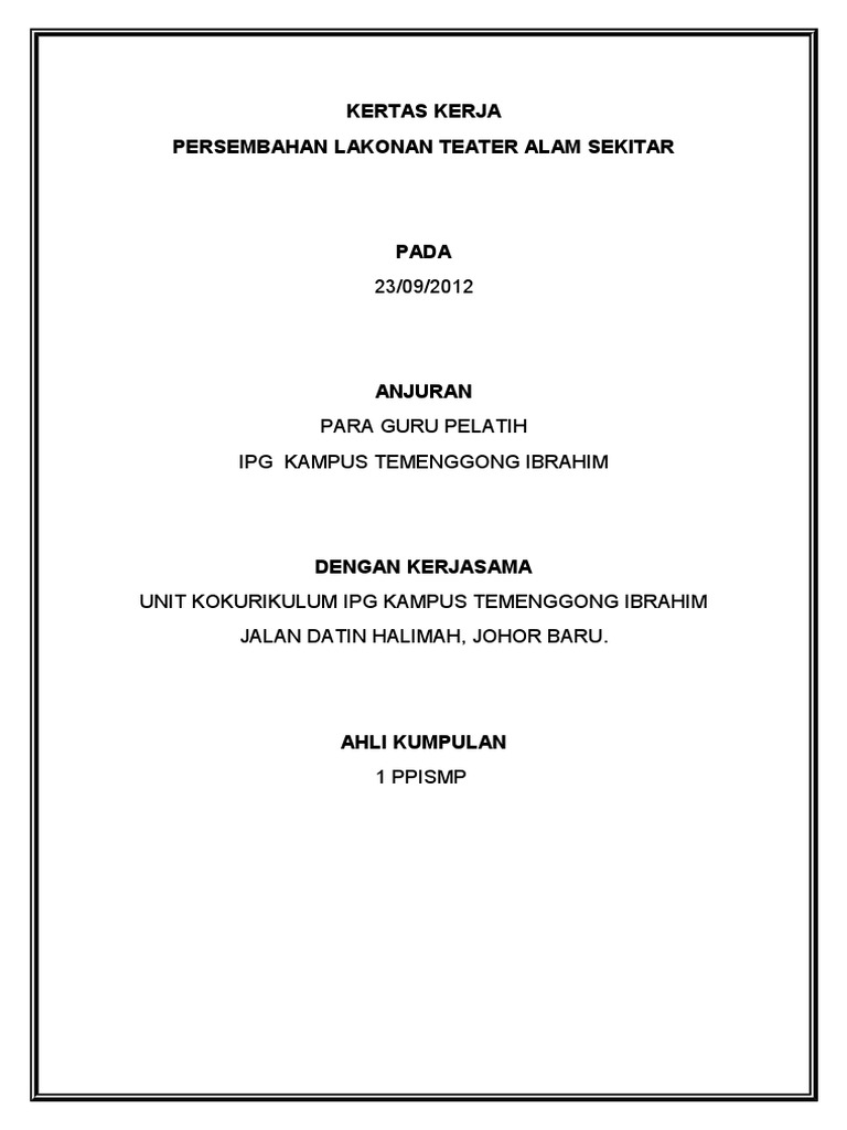 Please please send untuk saya. Contoh kertas kerja contoh kertas kerja 1 contoh kertas kerja mengadakan kunjungan muhibah jawatankuasa perwakilan pelajar jpp institusi perguruan bahasa melayu ipbmm ke institut perguruan kota bharu ipkb. - June 30 2022.